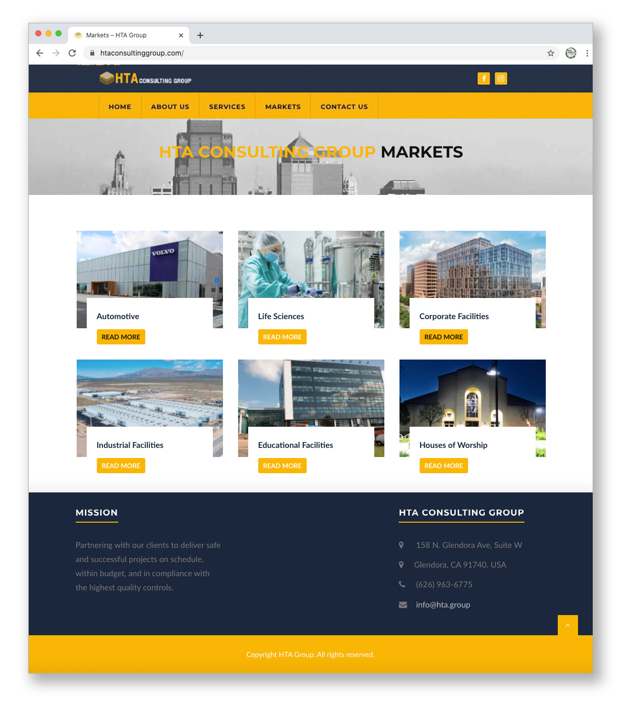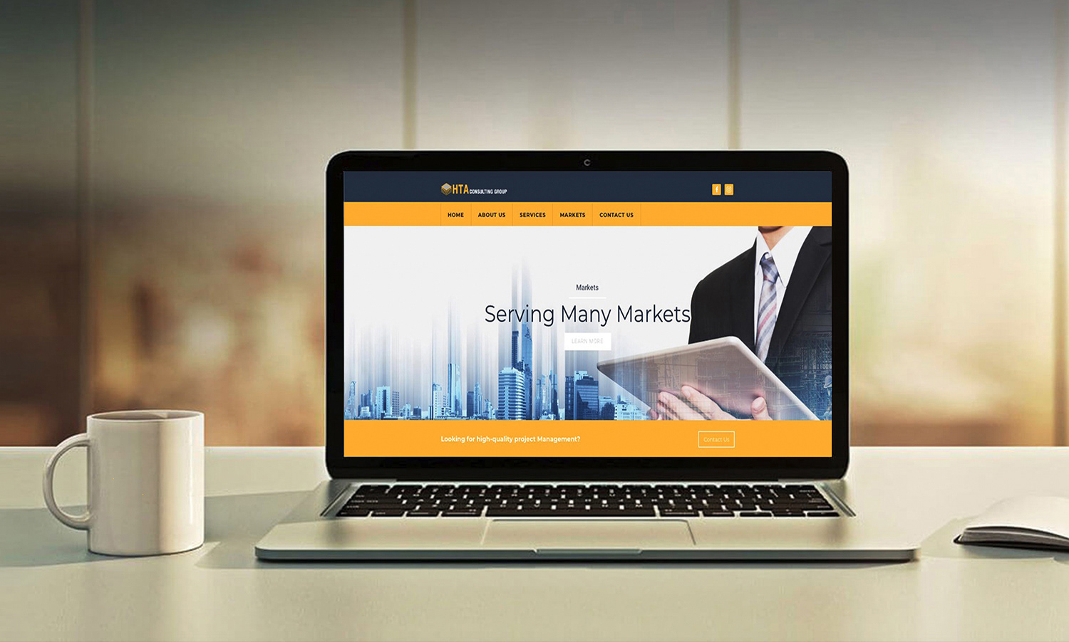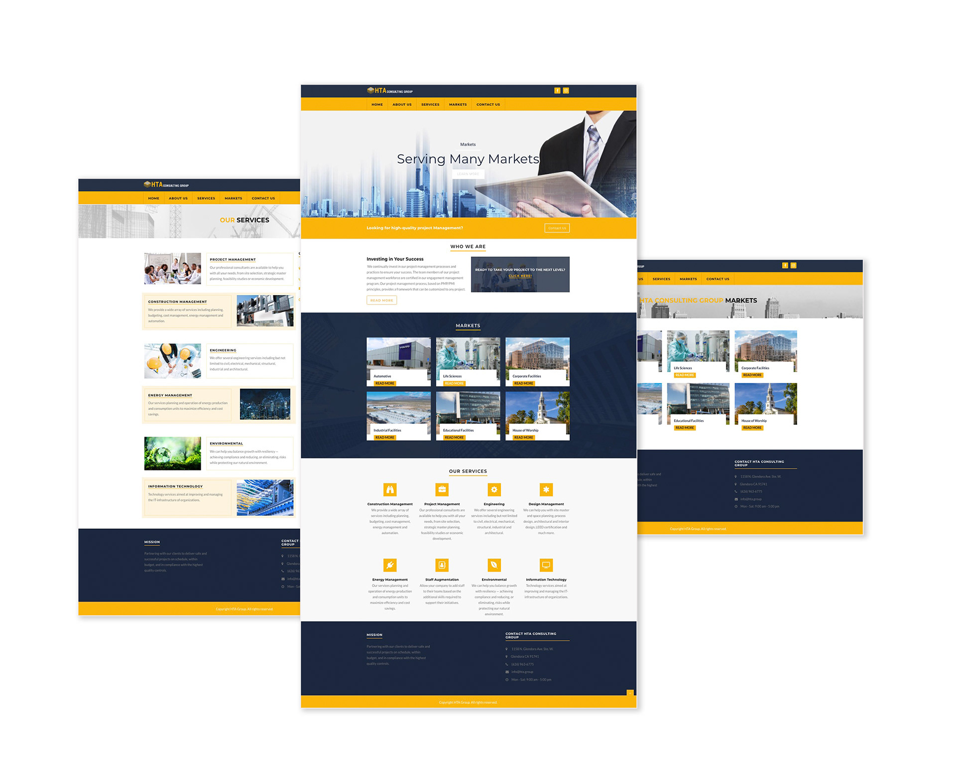 HTA Consulting Group is a construction management company and I wanted to give their website a very professional and serious style. The use of dark blue and the complimentary Ochre yellow to project the image of a solid, credible company.